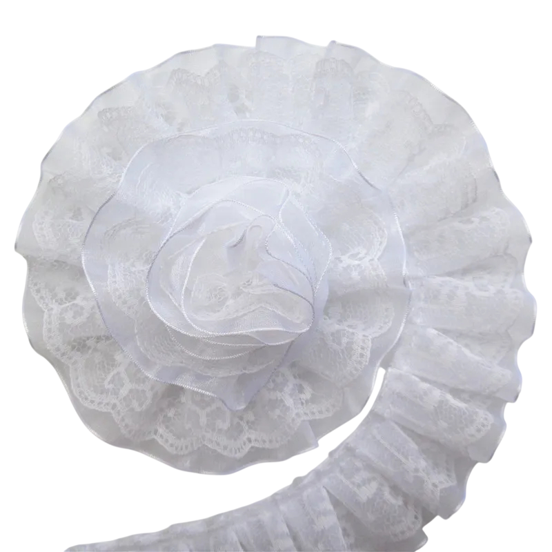 Kaksikerroksinen pitsinauha on tyylikäs tekstiililisä, joka sopii ompeluun, koristeluun ja luoviin projekteihin. Hienon pitsikuvion ja kaksikerroksisen rakenteen ansiosta se näyttää erittäin koristeelliselta ja antaa tuotteille tyylikkään ilmeen. Tämäntyyppinen pitsi on ihanteellinen vaatteiden, muotilisävarusteiden tai erilaisten tekstiilikoristeiden koristeluun. Suunnittelunsa ansiosta se tuo jokaiselle projektille hienostuneisuutta ja romanttista luonteenpiirrettä.