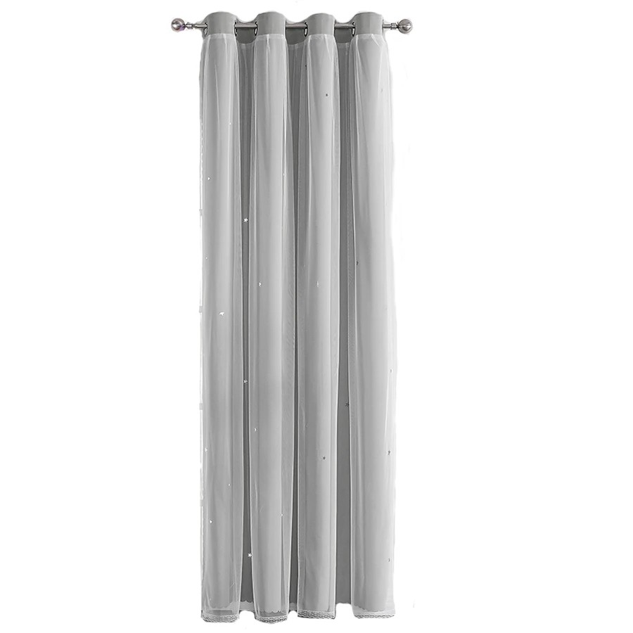 Kaksikerroksiset lasten verhot tähtikuvioilla 132 x 274 cm Valoa estävät verhot läpikuultavilla verhoilla lastenhuoneeseen Tyttöjen verhot renkailla