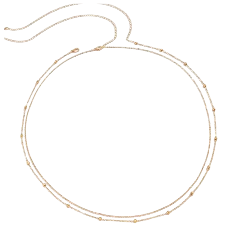 Tämä kaksinkertainen vatsaketju tyylikkäässä kultasävyssä on täydellinen koru naisille, jotka haluavat korostaa vyötärölinjaa ja lisätä modernia ilmettä asusteeseensa. Pituuden ollessa 70 cm ja 25 cm säädettävän pidennyketjun ansiosta se mukautuu eri vartalotyypeille. Ketju on suunniteltu vartaloasusteeksi, joka sopii uimapukujen, toppien tai kesämekkojen kanssa ja jota voit käyttää niin rannalla, festivaaleilla kuin juhlassakin. Sen kevyt rakenne ja hillitty kiilto tekevät siitä monikäyttöisen koristeen, joka on helppo yhdistää muihin asusteisiin. Kaksinkertainen muotoilu antaa korulle tyylikästä syvyyttä ja visuaalista kiinnostavuutta.
