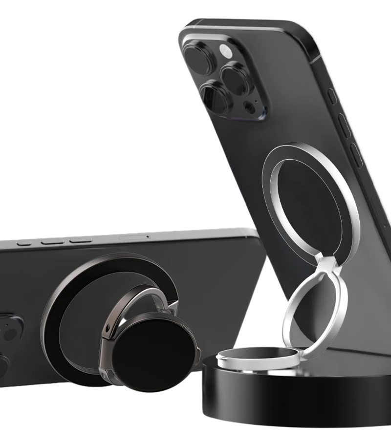 Käytännöllinen kaksipuoleinen teline magneettirenkaalla varmistaa puhelimen tukevan kiinnityksen, mukavan käytön ja joustavan sijoittamisen. Täydellinen kuvaus