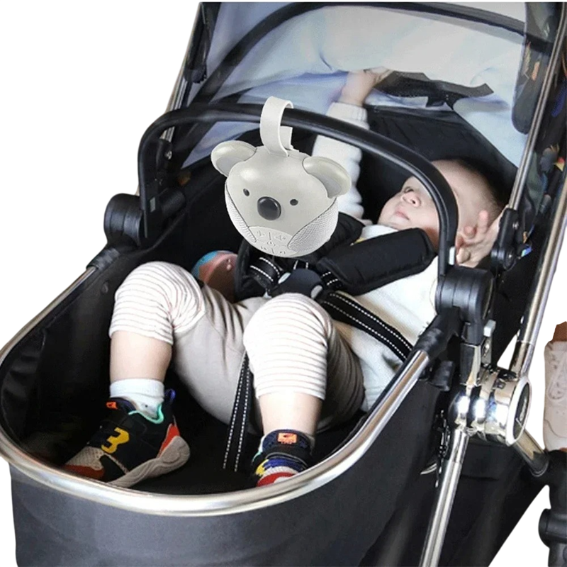 Kannettava lasten rauhoittamislaite ajastimella, 3 kappaletta valkoista kohinaa ja valomusiikkia, koala-motiivi, ABS, 12 x 10 x 9 cm