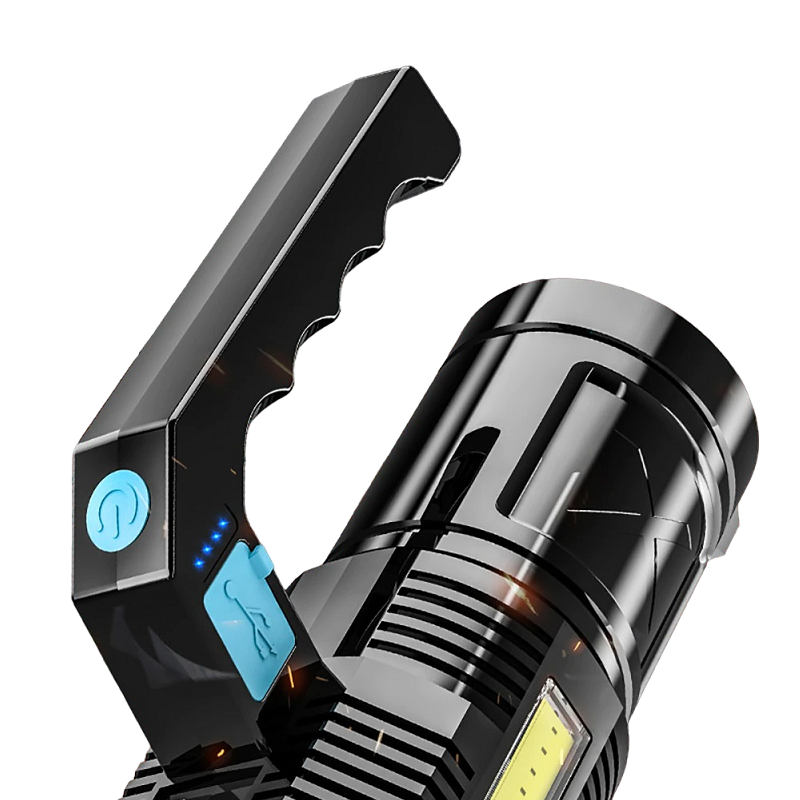Toiminnot ja varusteet: nopeasti ladattava, vedenkestävä, korkea kirkkaus, ergonominen kahva