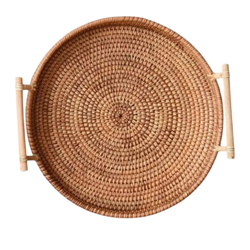 Käsin kudottu tarjotin, jonka halkaisija on 24 cm, on käytännöllinen ja samalla koristeellinen lisä, joka auttaa pitämään järjestystä jokaisessa kodissa. Sen pyöreä muoto ja matala profiili tekevät siitä kevyen ja elegantin, ilman että se vie liikaa tilaa. Sitä voidaan käyttää perinteisenä tarjottimena, korina tai järjestäjänä pienille esineille, jotka haluat pitää käden ulottuvilla. Koko 24 cm on ihanteellinen päivittäiseen käyttöön ja se mukautuu helposti eri paikkoihin sisustuksessa. Käsin kudonta antaa jokaiselle kappaleelle ainutlaatuisen ilmeen ja hienon rakenteen.