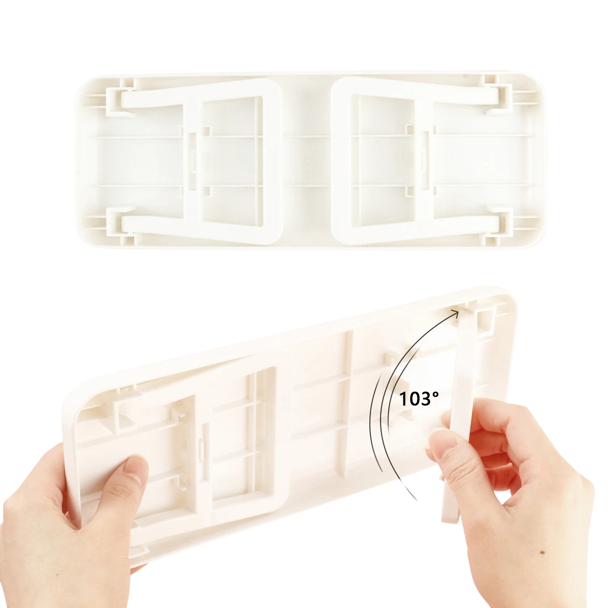 Vankat kokoontaitettavat jalat pitävät tuen tukevasti paikallaan, ja niiden avautuminen 103° kulmaan tukee turvallista asettamista työpinnalle. Tuki auttaa rajoittamaan käden tärinää, joten viivojen piirtäminen, geelin levittäminen ja tarkka koristelu onnistuvat paremmin. Tuki on myös kevyt ja kannettava, joten se on ihanteellinen ei vain salonkiin, vaan myös liikkuville kynsitekijöille tai kotikäyttöön. Pinta on helppo pitää puhtaana – riittää, että pyyhit ja voit jatkaa työskentelyä. Yleisrakenteensa ansiosta sitä voi käyttää manikyyrissä, pedikyyrissä ja tekniikoiden harjoittelussa.