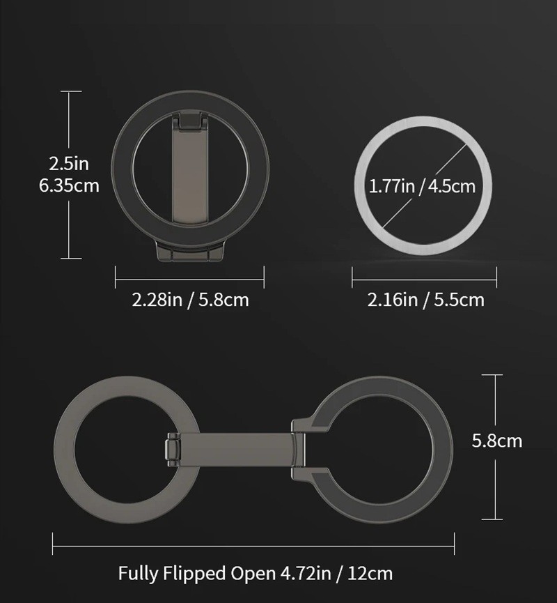 • Paketin sisältö: 1× taitettava pyöreä magneettinen puhelinteline