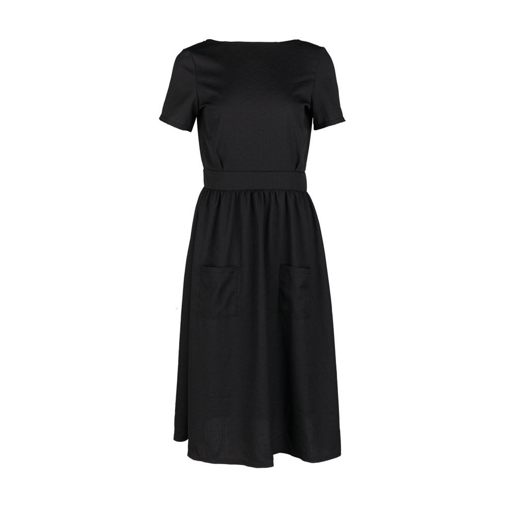 Naisten rento mekko, jossa on lyhyet hihat ja taskut.