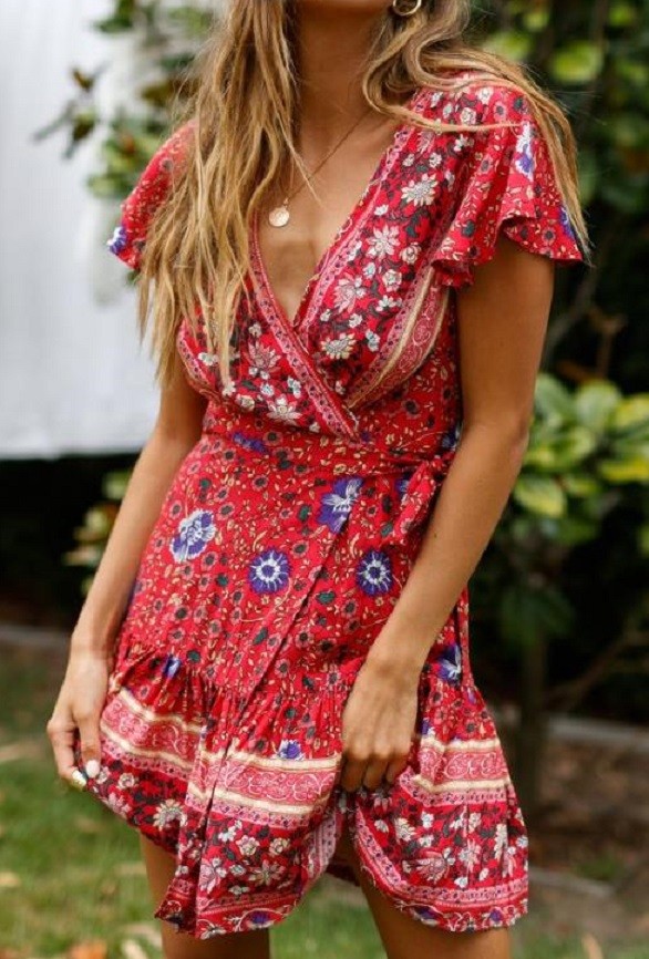 Kaunis romanttinen kesämekko röyhelöisellä helmalla ja hihoilla.