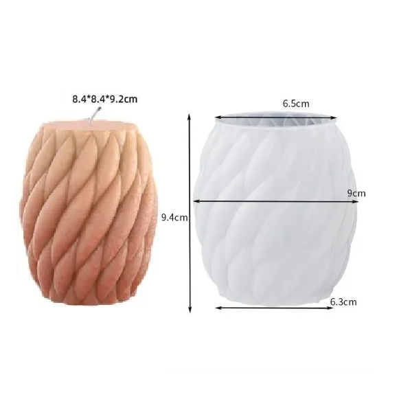 Keskikokoinen kynttilä- ja saippuamuotti, ovaali, spiraalimallilla 8,4 x 8,4 x 9,2 cm, silikonimuotti koristeita varten