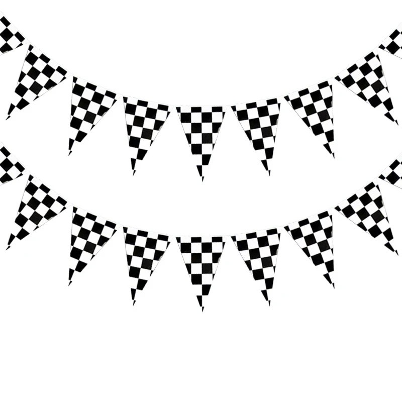 Shakkinauhojen teema on ikoninen symboli kilpailuille ja moottoriurheilulle. Kilpailu lippugirlanda täydentää siten täydellisesti autoaiheisten juhlien koristelua ja auttaa luomaan autenttisen kilpailuradan tunnelman, joka ilahduttaa niin pieniä kuin suuria autojen faneja.