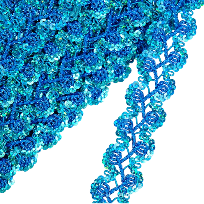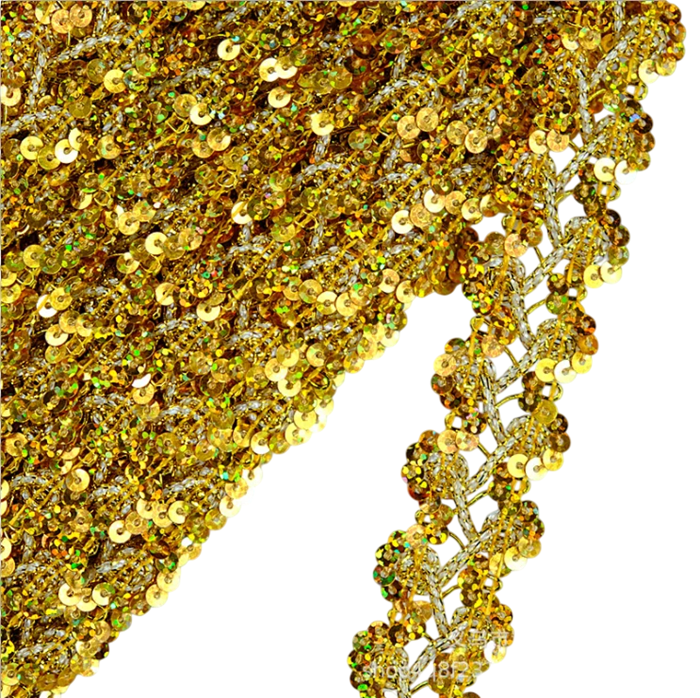 Tämä koristeellinen pitsinauha kimalteilla on sopiva sekä ammattilaisompeluun että kotimaiseen luovaan työhön. Sitä voidaan käyttää koristeellisena reunuksena, koristeena tai erottuvana elementtinä vaatteiden ja tekstiilituotteiden muokkauksessa.