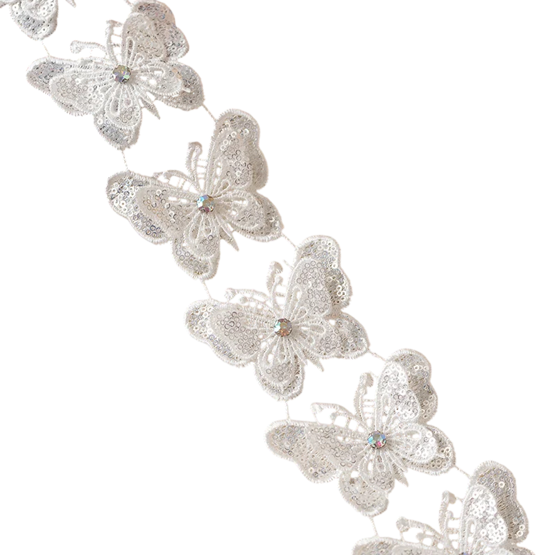 - Koristeellinen pitsinauha kimalteilla ja perhoskuviolla