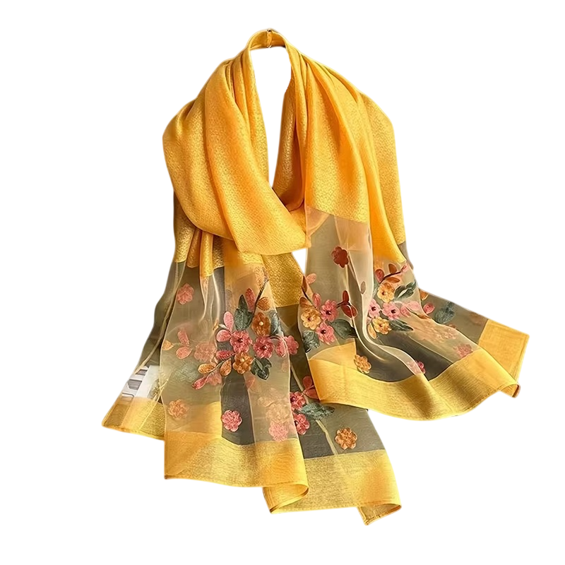Kevyt naisten huivi kukkakirjailulla tuo asuusi hienostuneisuutta ja tyyliä. Ilmava materiaali sopii käytettäväksi ympäri vuoden. Täydellinen kuvaus