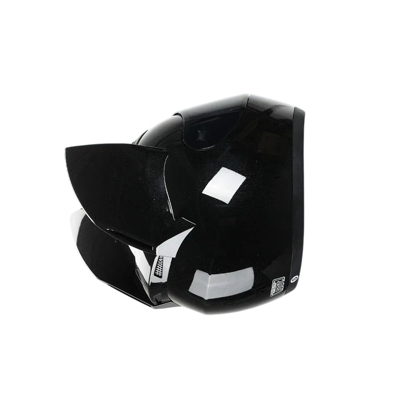 Kypärän kuori on valmistettu ABS+ESP-materiaalien yhdistelmästä, joka lisää rakenteen kestävyyttä ja vakautta kohtuullista painoa säilyttäen. Koko kasvot peittävä muotoilu tarjoaa suojaa sekä päälle että kasvoille ja tukee turvallisuuden tunnetta ajon aikana. Käytännöllinen käännettävä rakenne mahdollistaa kypärän etuosan nopean avaamisen, mikä on hyödyllistä kommunikoidessa tai lyhyissä tauoissa. Kokonaisvaltainen käsittely korostaa tasapainoista suhdetta suojan, mukavuuden ja henkilökohtaisen tyylin välillä.