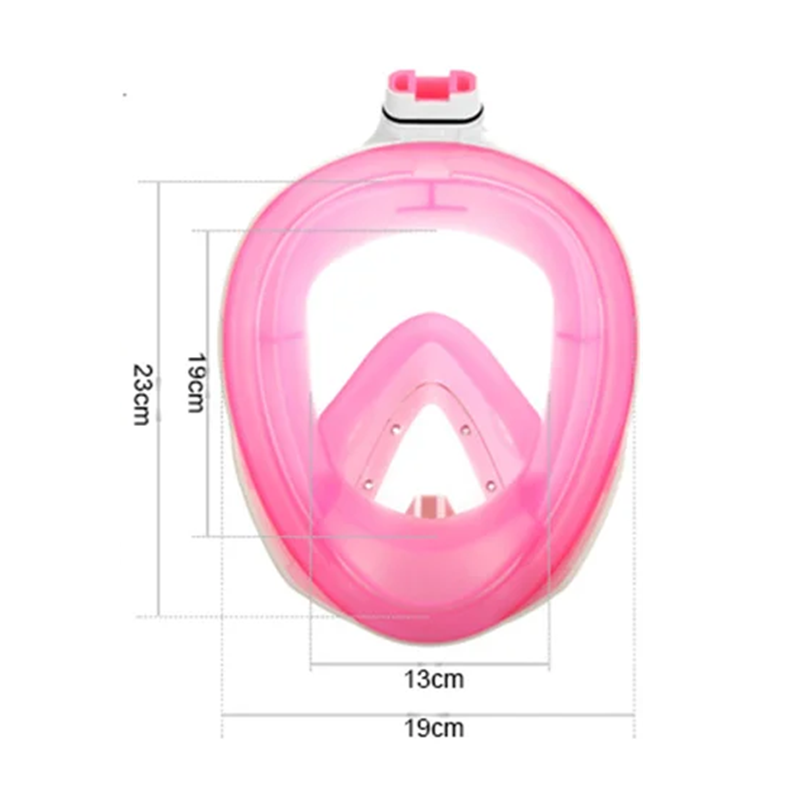 Koko kasvot peittävä sukelluskypärä koko L/XL 19x13 cm panoraamanäkymällä ja korvatulpilla mukavaan snorklaukseen ja uintiin