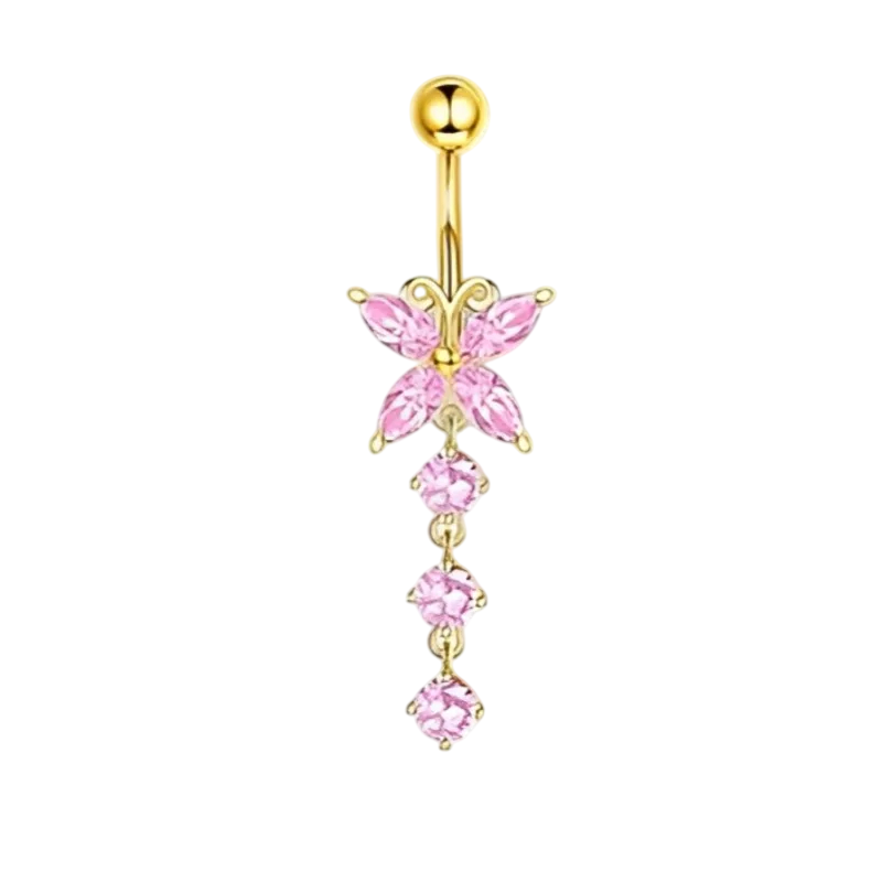 Hieno kehonkoru kirurgista terästä timantilla ja perhosaiheella, täydellinen tyylikkään ja hillityn lävistyksen korostamiseen. Täydellinen kuvaus
