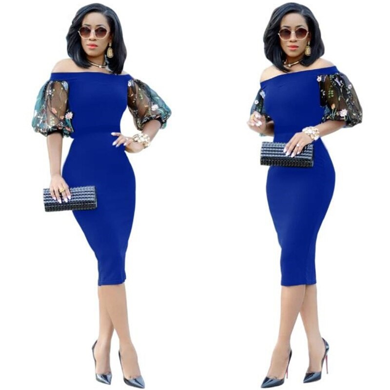 Tyylikäs naisten kotelomekko, jossa on madalletut olkapäät.