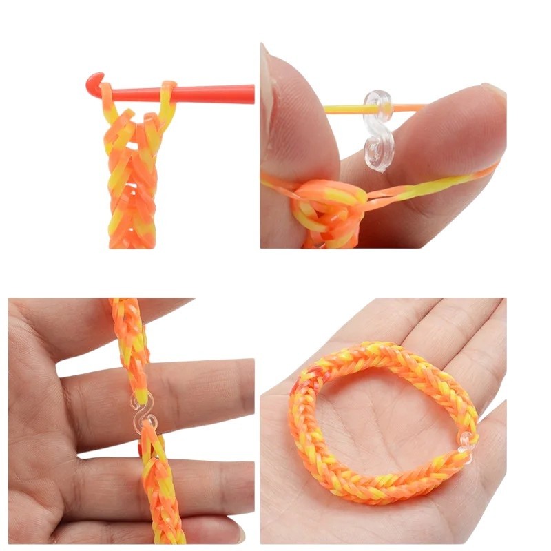 600 kappaletta värikkäitä kuminauhoja, jotka mahdollistavat monien erilaisten kuvioiden, mallejen ja ainutlaatuisten koristeiden luomisen. Kätevä