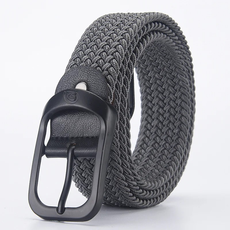 Kudottu joustava vyö, unisex 3,3 cm Musta tekstiilivyö metallisoljella Joustava muotiasuste farkuille, housuille ja shortseille
