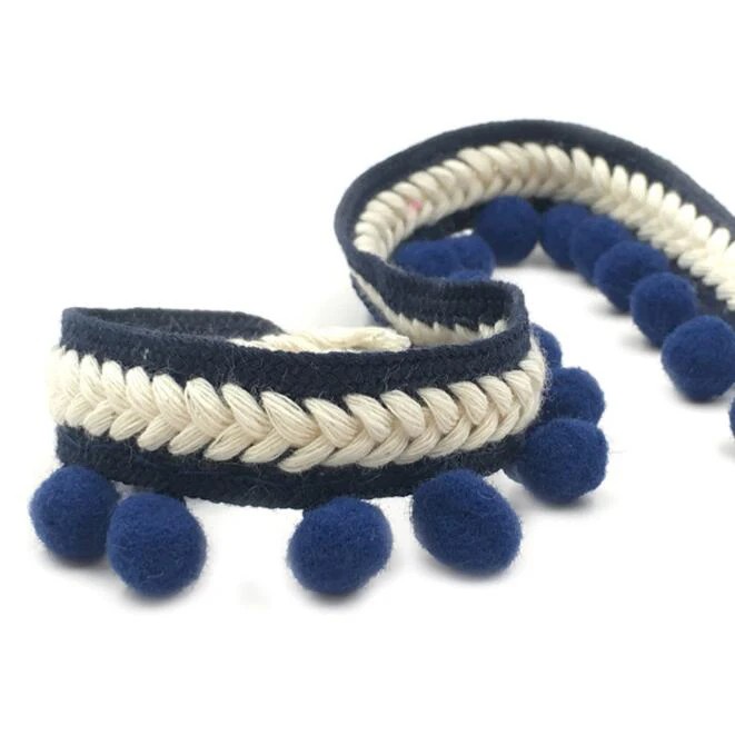 Tämä kudottu koristeellinen nauha on loistava valinta kaikille, jotka haluavat antaa projekteilleen mielenkiintoisen ja tyylikkään ilmeen. Pyöreät tupsut luovat leikkisän koristeellisen efektin, joka korostuu vaatteiden tai sisustuselementtien koristelussa. Polyesterin ja puuvillan yhdistelmän ansiosta nauha on kestävä ja samalla miellyttävä koskettaa. Jos etsit koristeellista tekstiilisäilytystä ompeluun, koristeluun tai luoviin projekteihin, tämä kudottu nauha on käytännöllinen ja esteettinen ratkaisu.