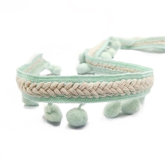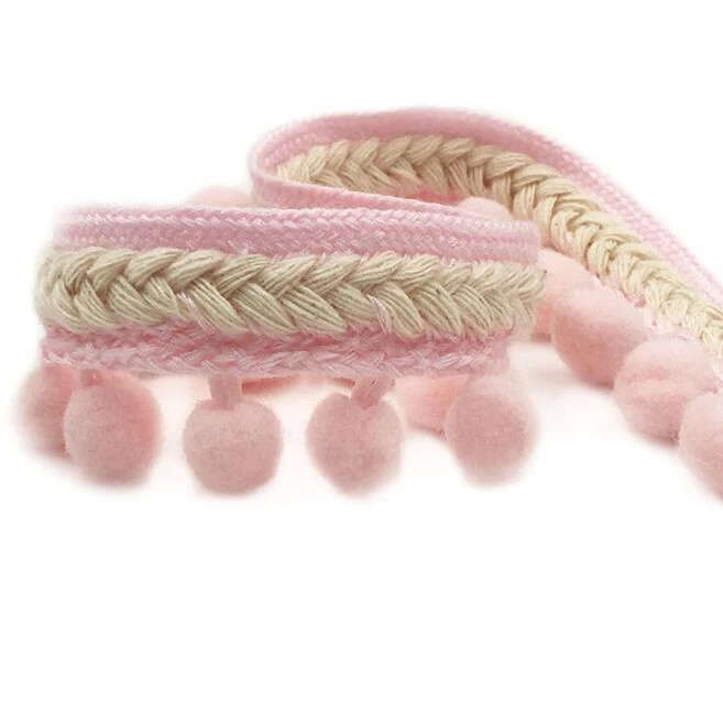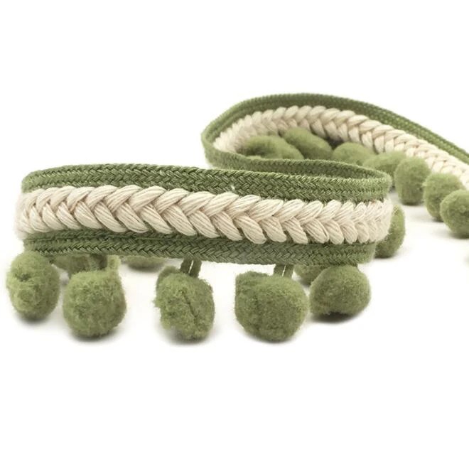 - Kudottu nauha pyöreillä tupsuilla ainutlaatuisen koristeellisen ilmeen saavuttamiseksi