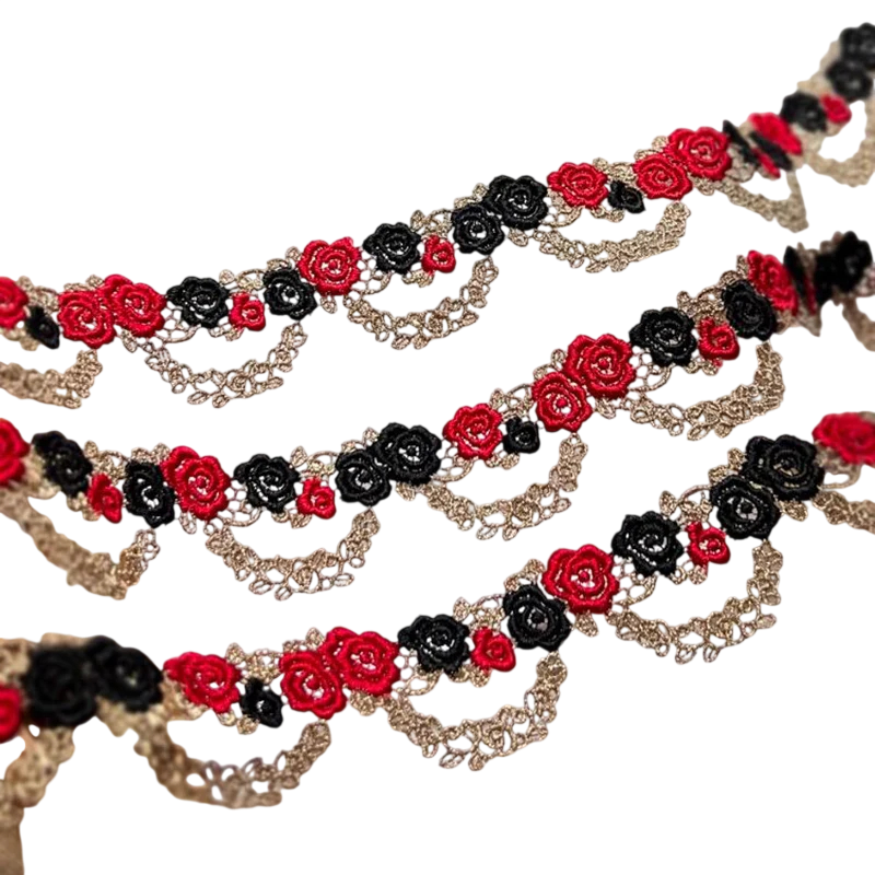 Tämä koristeellinen nauha on ihanteellinen vaatteiden, hameiden, paitojen tai muotiasusteiden koristeluun. Sitä voidaan käyttää myös häiden koristeiden, pukujen tai käsintehtyjen lisävarusteiden valmistamiseen. Hieno pitsirakenne brodeerauksella antaa tuotteille elegantin ja koristeellisen ilmeen.