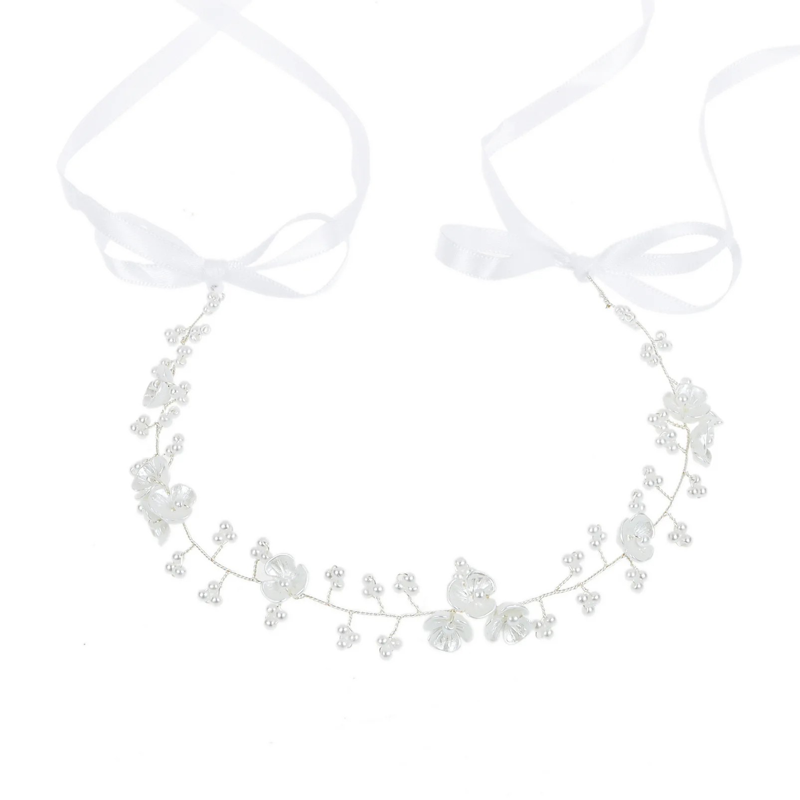 Kukkakuvioinen hiuspanta helmillä 33–35 cm Romanttinen hiuspanta nauhoilla Häät koriste hiuksiin naisille