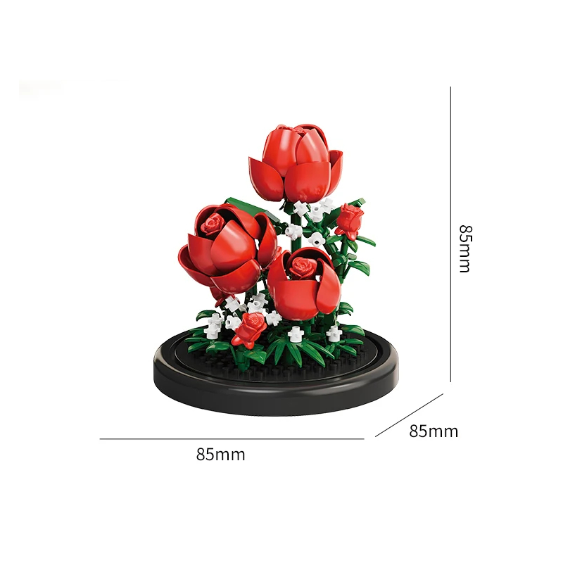 Punaisista ruusuista koostuva rakennussarja läpinäkyvän kannen alla tarjoaa upean yhdistelmän luovaa viihdettä ja koristeellista muotoilua. Ruusut ovat yksi tunnetuimmista rakkauden, eleganssin ja ilon symboleista, ja tämän mallin realistisen muodon ansiosta se elävöittää minkä tahansa sisustuksen. Koko 85 x 85 x 85 mm tekee siitä erinomaisen työpöydälle, hyllylle tai lahjaksi. Malli on valmistettu kestävästä ABS-muovista, joka on turvallinen ja sopii yli 3-vuotiaille lapsille.