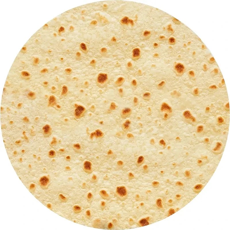 Kulma flanelinen peitto, jonka halkaisija on 90 cm, on alkuperäinen lisä kotiin, joka heti herättää huomiota leikkisällä meksikolaisen tortillan ulkonäöllään. Vaaleanbeige tausta epäsäännöllisillä „paistetuilla“ kohdilla muistuttaa tuoretta paistettua tortillaa, joten peitto näyttää suurelta tacolta tai tortillalta. Pienemmän halkaisijan ansiosta se on täydellinen lapsille, jalkojen peittämiseen, tuolin lisäykseksi tai koristeeksi sohvalle. Se toimii myös hauska valokuvarekvisiittana, kun kääriydyt siihen kuin suureen rullaan.