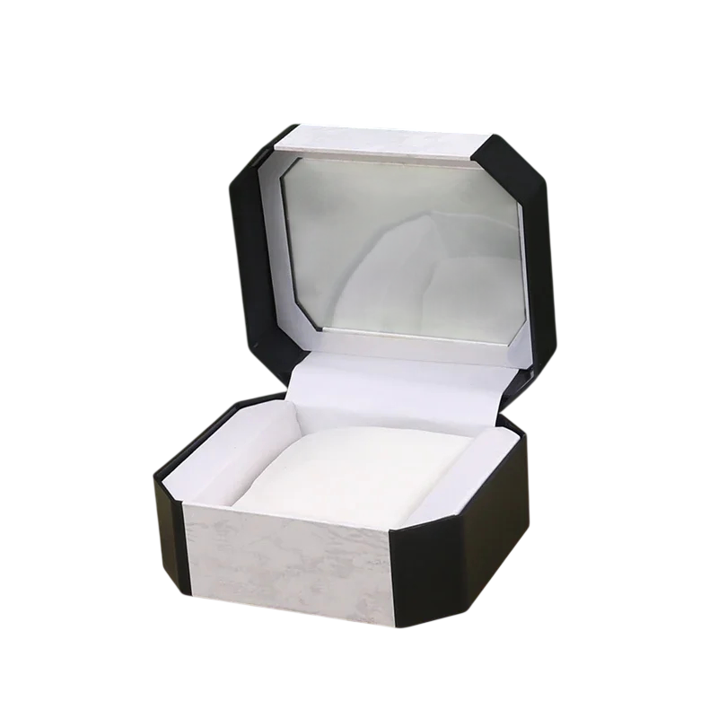 Pakkaus on valmistettu akryylistä ja siinä on kestävä rakenne avautuvalla kannella. Sisätila sisältää tyynyn, joka on tarkoitettu kellojen säilyttämiseen ja auttaa pitämään kellot paikoillaan.