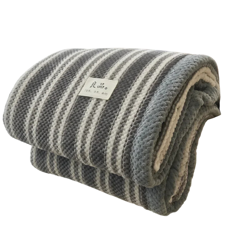 Lämmin raidallinen peitto 200 x 230 cm 1,6 kg Extra suuri pörröinen peitto tiheällä tikkaamalla Raidallinen kuvio makuuhuoneen maksimaaliseen mukavuuteen