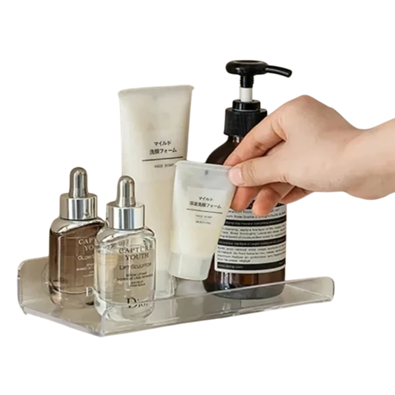 - Mitat 30 × 10 cm – runsaasti tilaa annostelijoille, kosmetiikalle ja pienille koristeille