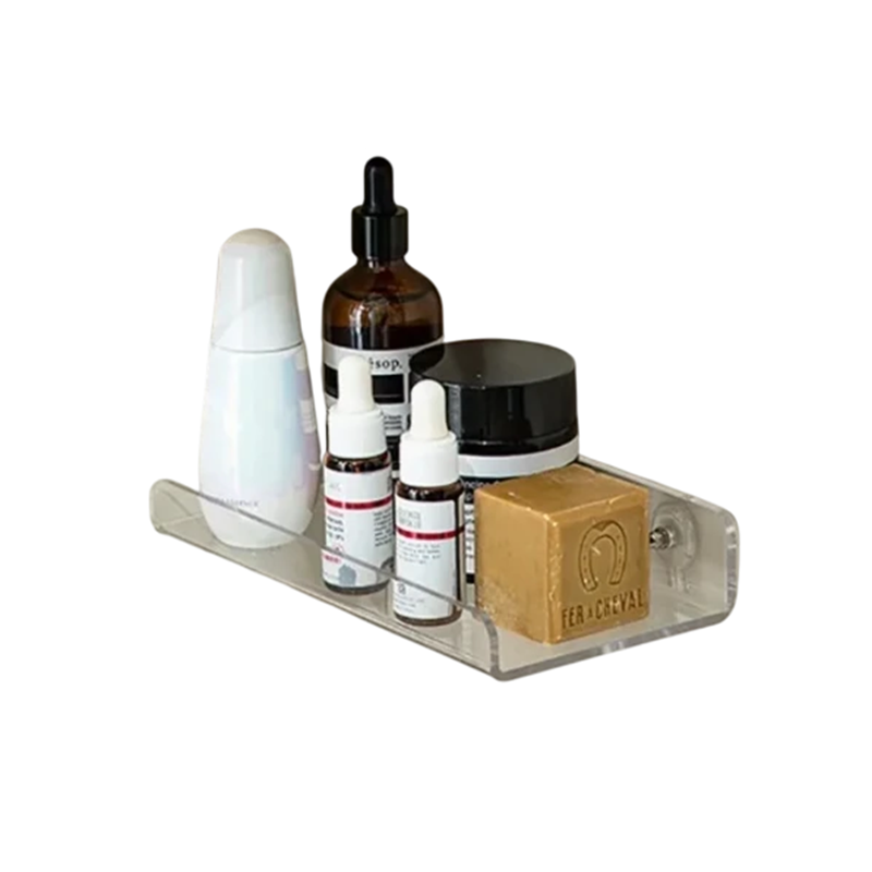 Hylly ei ole ainoastaan käytännöllinen, vaan myös koristeellinen – ihanteellinen tyylikkäiden kosmetiikkapullojen, kynttilöiden tai kylpytarvikkeiden esillepanoon. Tukeva rakenne ruuveilla varmistaa turvallisen käytön myös päivittäisessä rasituksessa.