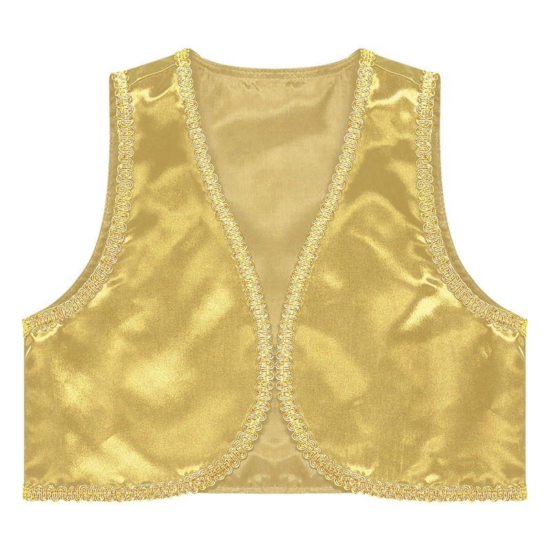 Lasten arabialaisen prinssin puku Kultainen farkkuliivi pojille Avoin liivi kultaisella reunalla Cosplay-juhliin ja Halloween-puku polyesteristä