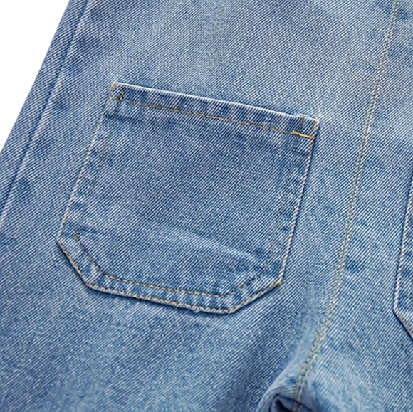 Lasten farkkuhaalari olkaimilla ja neuleella Pitkät housut Taskut Olkapään napit Mukava puuvilla-polyesteri haalari vauvoille