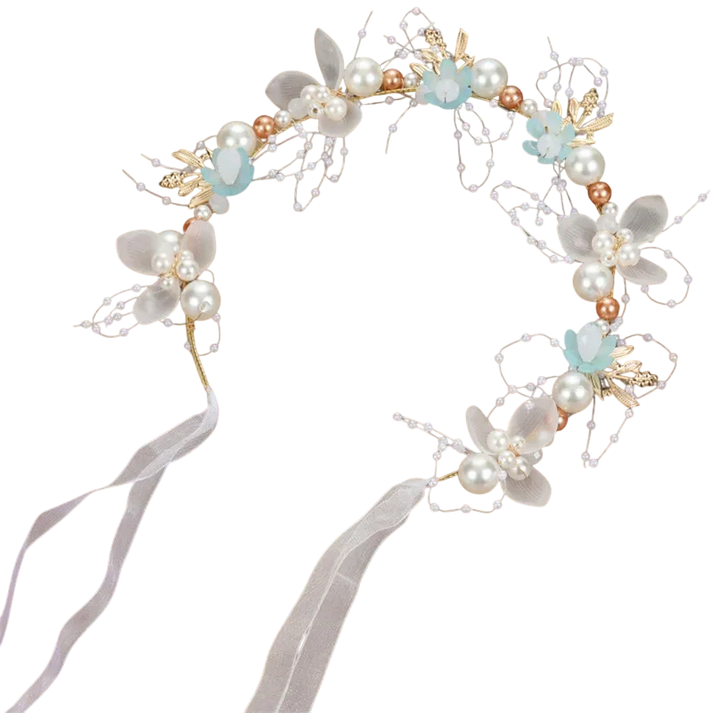 - Tyylikäs lasten hiuspanta kukkaseppeleellä ja helmillä