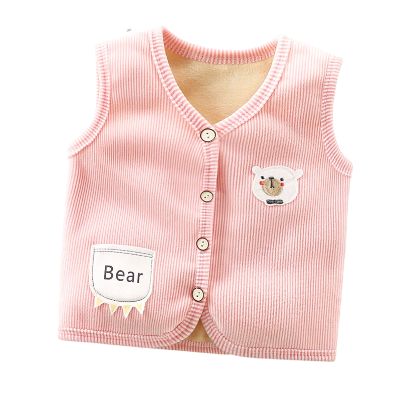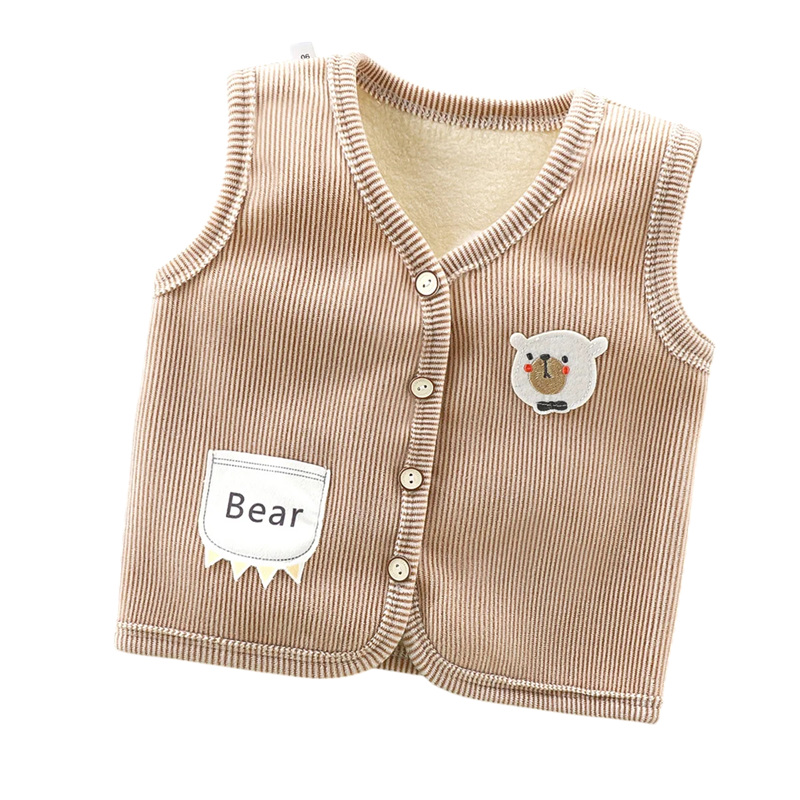 Lasten liivi vuorilla Syksyn ja talven lämmin takki pojille ja tytöille Samettinen liivi napilla ja taskulla, jossa on karhun brodeeraus ja nallekuva