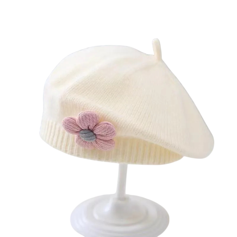 Söpö lasten talvibaret kukka-yksityiskohdalla pitää lämpimänä kylmässä säässä ja lisää asusteeseen hienon ja tyylikkään elementin. Täydellinen kuvaus