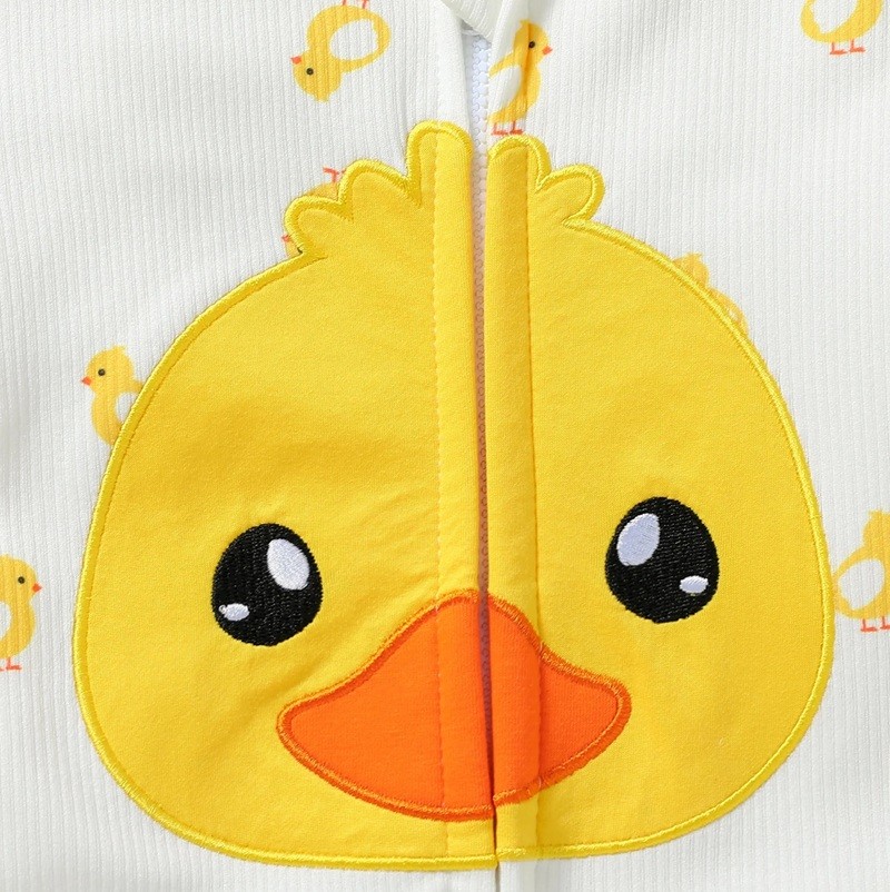 Tämä kompletti edustaa täydellistä yhdistelmää mukavuutta ja tyyliä. Pehmeä ja joustava materiaali varmistaa, että lapsi tuntee olonsa vapaaksi ja mukavaksi jokaisessa aktiviteetissa. Käytännöllinen vetoketjusuljenta helpottaa vaihtamista merkittävästi, mikä on jokaisen vanhemman arvostama, ja O-pääntie antaa vaatteelle klassisen, mukavan leikkauksen. Unisex-muotoilu iloisella ankka-motiivilla tekee siitä suosikkikappaleen jokaiselle vauvalle. Laadukas polyesterin ja spandexin yhdistelmä tekee haalista kestävä, pehmeä ja helppohoitoinen – täydellinen valinta päivittäiseen käyttöön tai alkuperäiseksi lahjaksi.