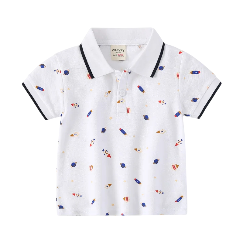 Lasten poikien polo paita kauluksella ja raketti aiheella Lyhyt hiha Puuvillapaita napilla puoliväliin