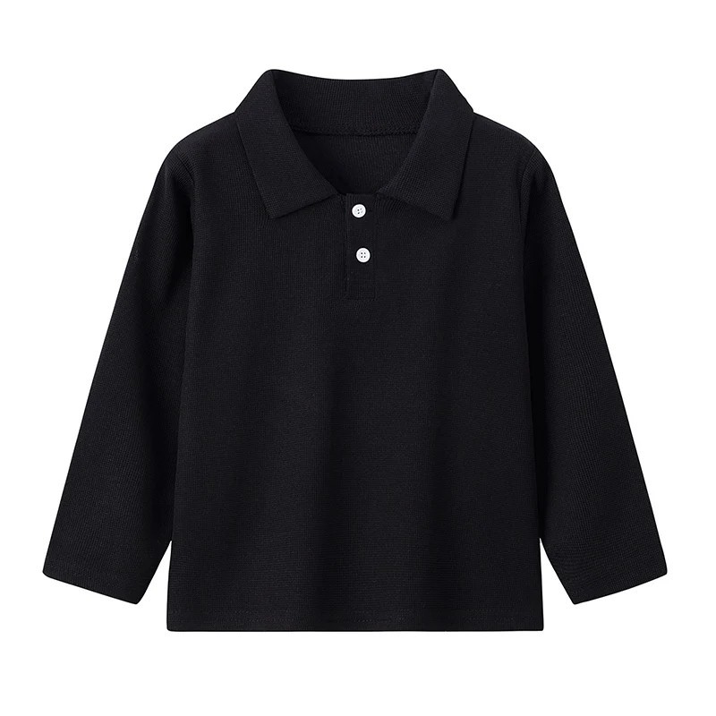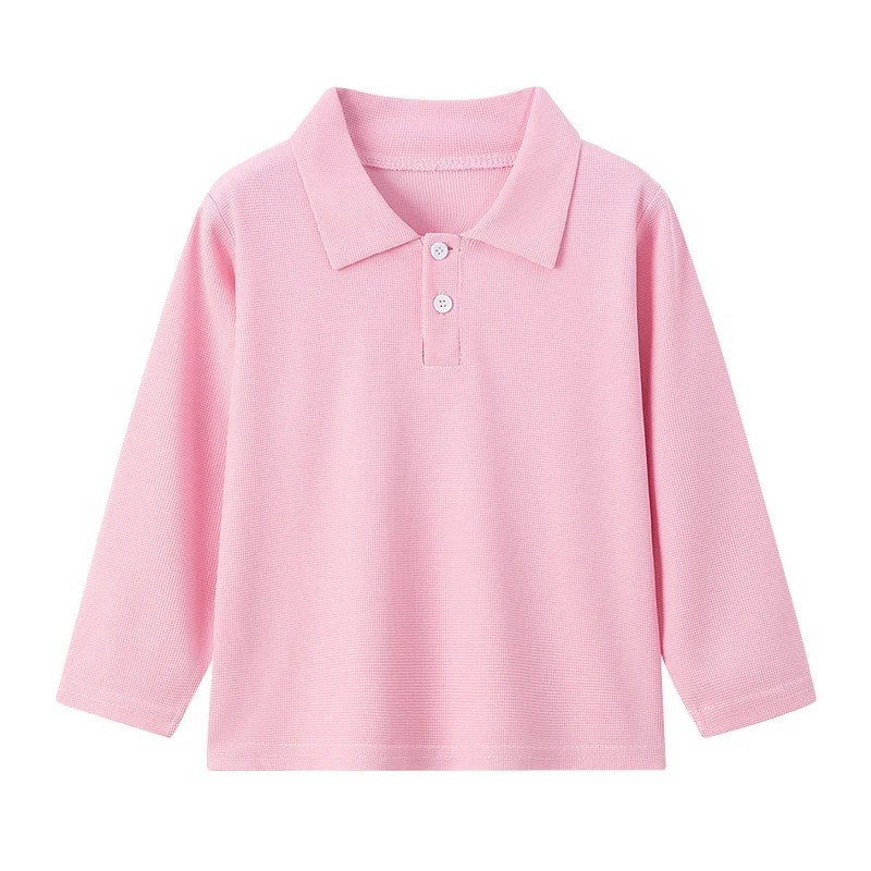 Lasten polo-paita kauluksella ja napilla Polyesterinen pitkähihaisuus yksivärinen urheilupaita pojille ja tytöille