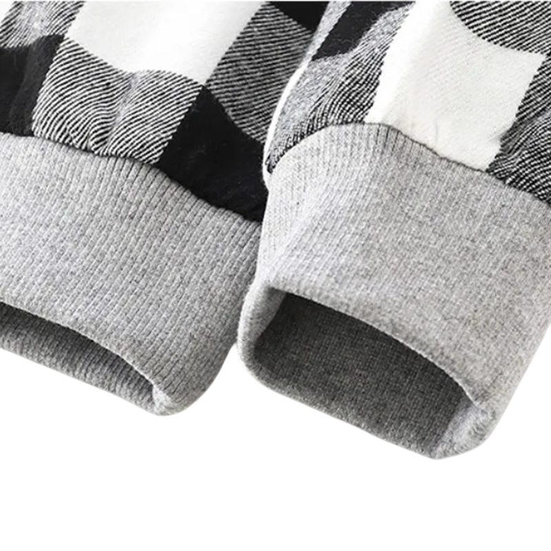 - Tyylikäs lasten ruudullinen takki hupulla musta-valkoisessa designissa