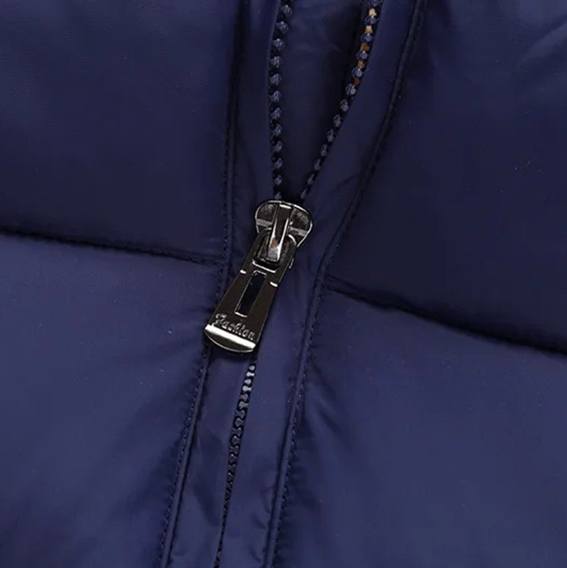 Lämmin lasten talvitakki hupulla, vetoketjulla ja yksivärisellä suunnittelulla. Puuvillan ja villan yhdistelmä tarjoaa korkean mukavuuden, lämmön ja luotettavan suojan talvella. Täydellinen kuvaus