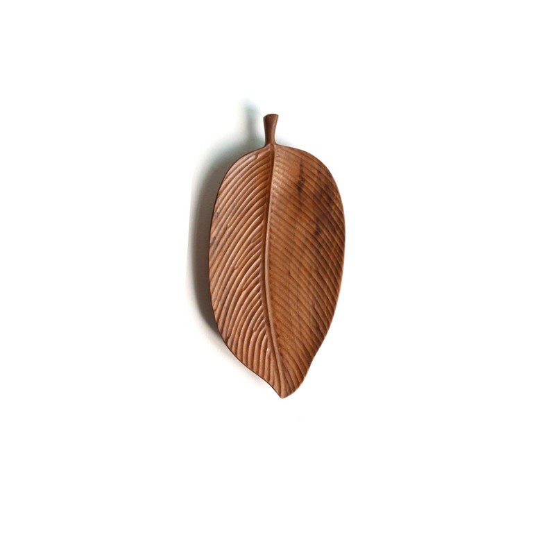 Puinen tarjotin lehden muodossa