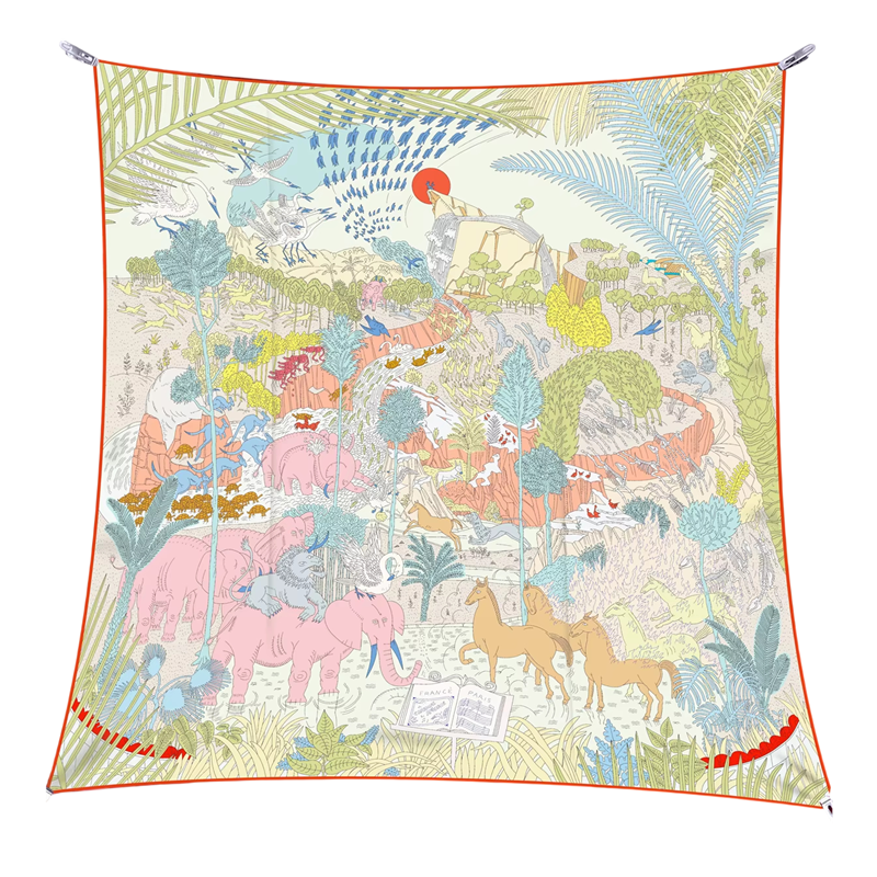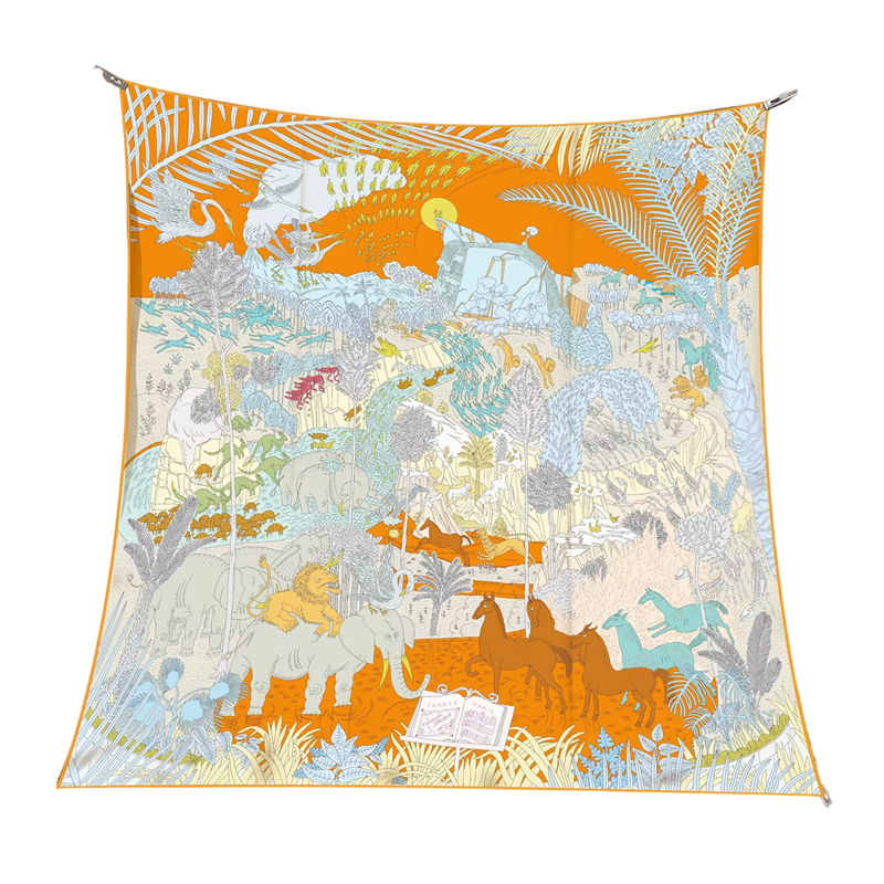 Tyylikäs huivi leikkisällä eläinviidakon motiivilla on näyttävä monikäyttöinen lisävaruste päähän, kaulaan ja kehoon moderniin asusteeseen. Täydellinen kuvaus