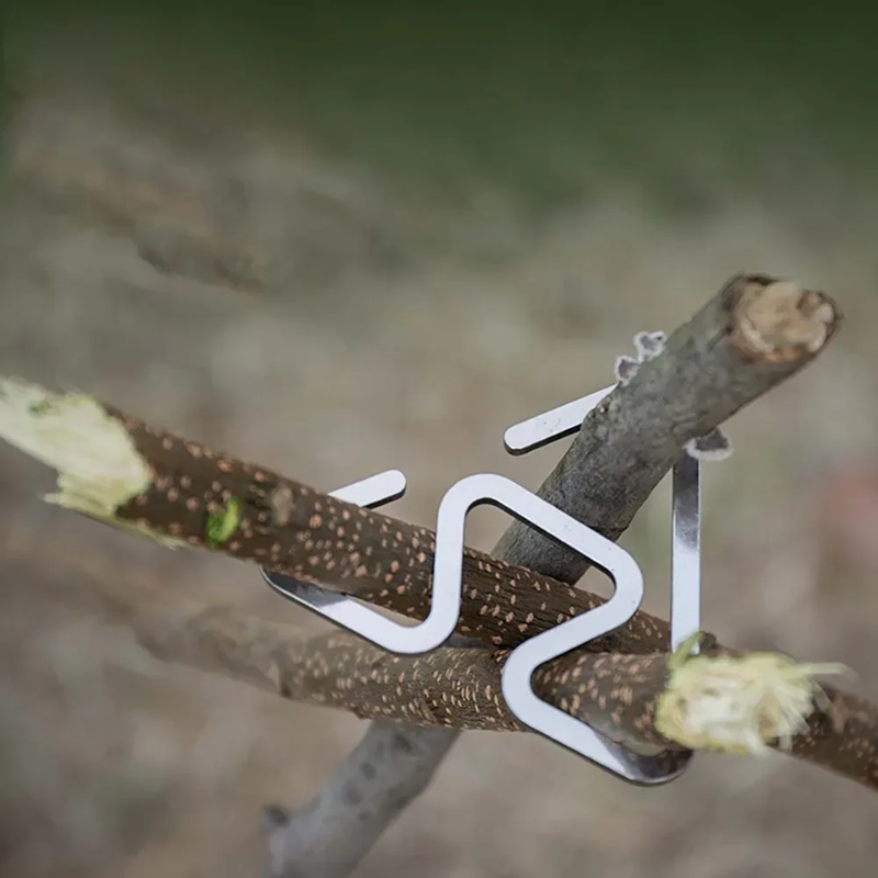 Kestävä ruostumaton teräksinen kolmiohaka, joka on ihanteellinen varusteiden ripustamiseen leirinnässä, vaelluksessa tai ulkoilutoiminnoissa, kompakti ja kevyt. Täydellinen kuvaus
