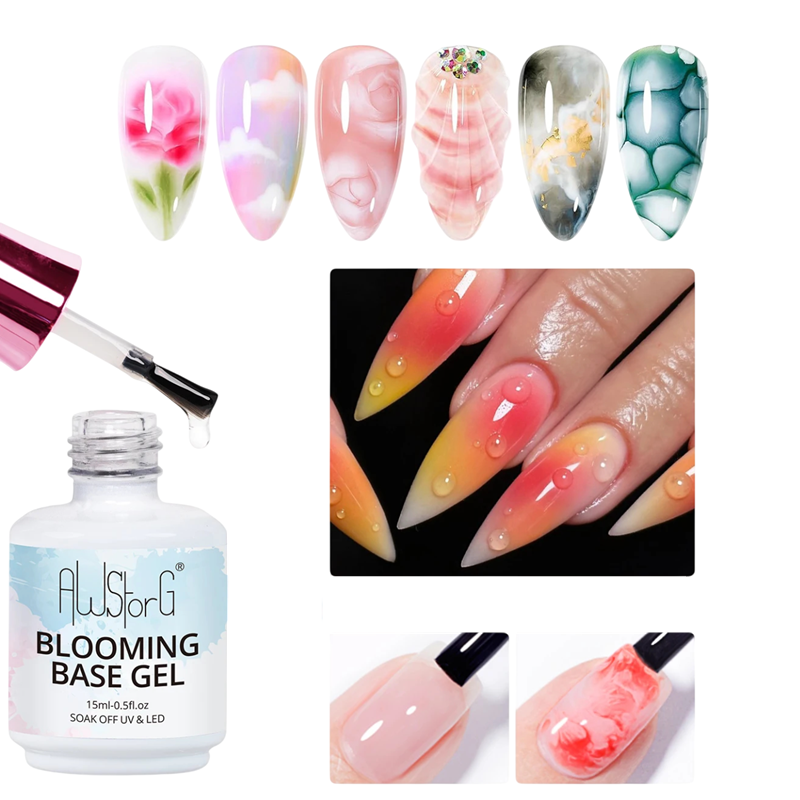 Erityinen läpinäkyvä geeli luo levittyviä, akvarelli- ja marmori-efektejä kynsille, sopii koristeluun LED- ja UV-lampuissa. Täydellinen kuvaus