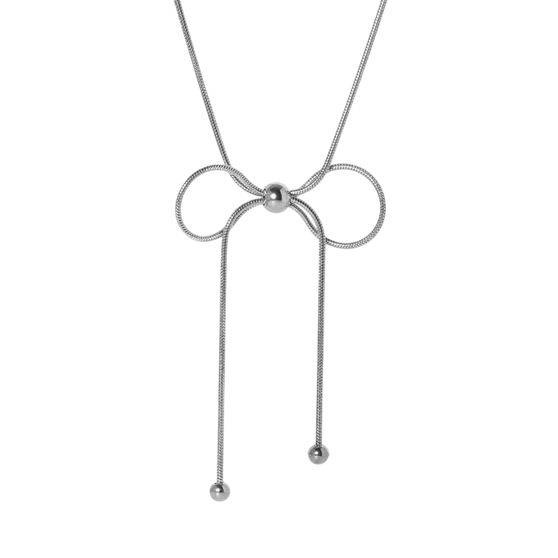 Hieno ruostumattomasta teräksestä valmistettu kaulakoru solmulla, pituus 41,5 + 5,5 cm. Säädettävä tyylikäs asuste jokapäiväiseen käyttöön ja juhlatilaisuuksiin. Täydellinen kuvaus
