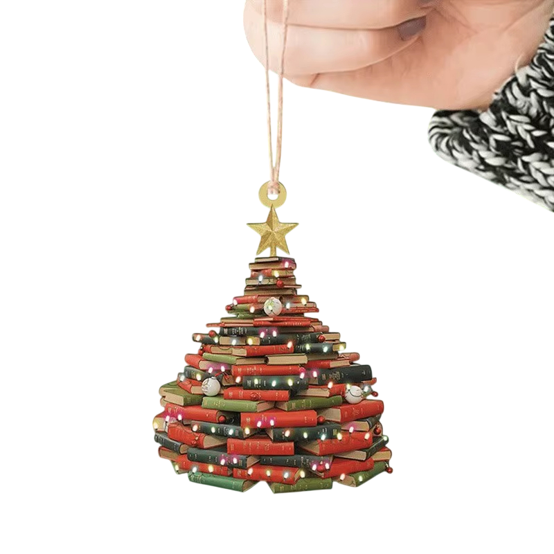 Roikkuva koriste, jossa on kirjamotiivi, tuo joulukuuseen ja sisustukseen rauhallista tunnelmaa ja ilahduttaa jokaista lukijaa ja kirjan ystävää. Täydellinen kuvaus