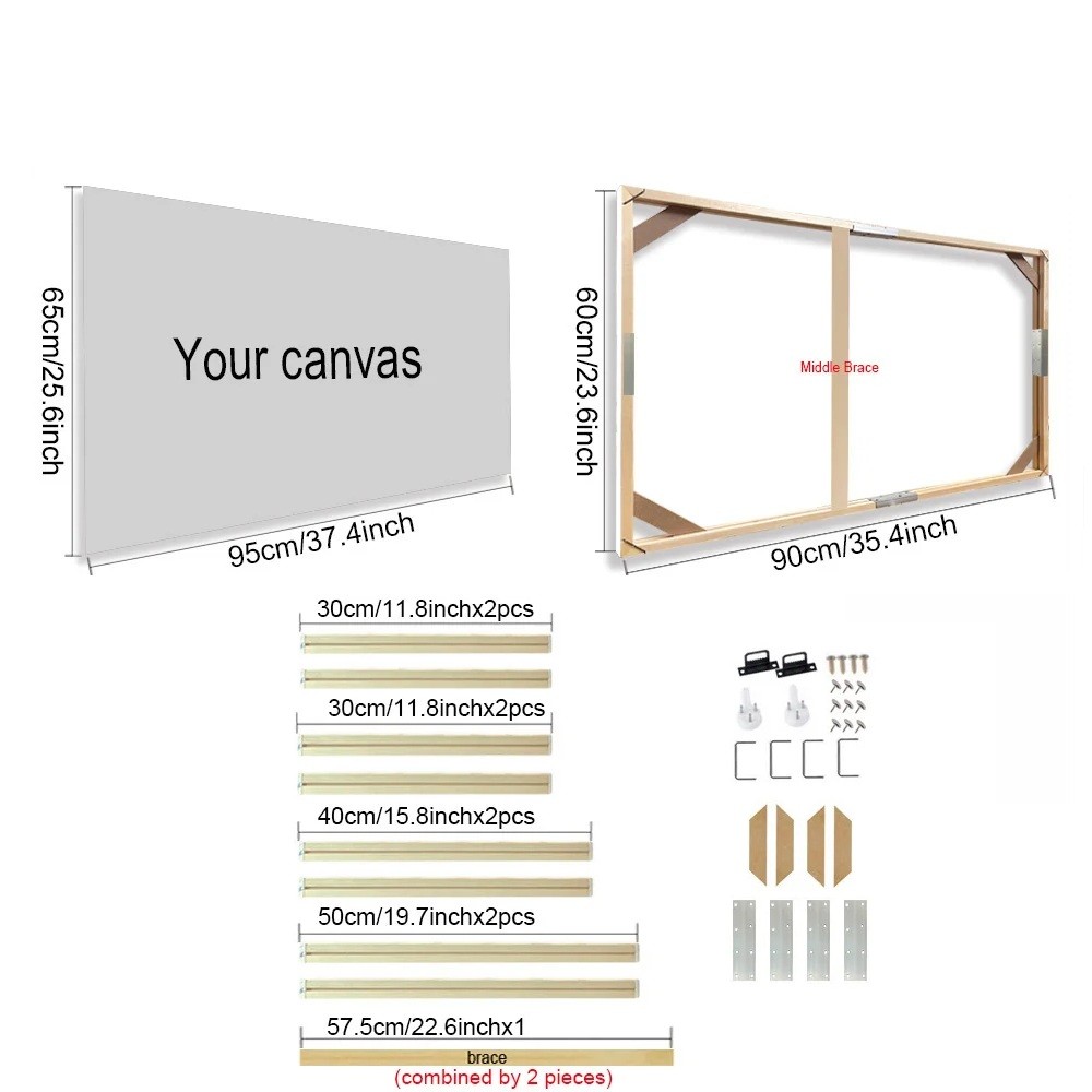 Luonnollinen puinen valokuvakehys 60 x 90 cm Kangaskehys 65 x 95 cm Keskivahvistuksella 57,5 cm ripustettava kehys valokuville taiteille DIY