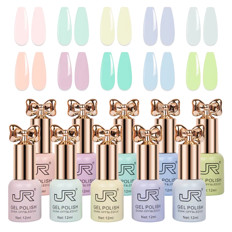 Tämä luova kokoelma kymmentä geelilakkaa 12 ml on suunniteltu mukauttamaan manikyyriä kotona. Sarja tarjoaa monipuolisen värivalikoiman, joka sopii päivittäiseen käyttöön sekä näyttävään kynsitaiteeseen. Lakkoja voidaan kovettaa UV- ja LED-lampuissa, mikä takaa yleisen yhteensopivuuden yleisesti käytettävän varustuksen kanssa. 12 ml:n suurempi tilavuus jokaisessa pullossa tekee sarjasta käytännöllisen usein ja pitkään käyttöön. Tuote sopii sekä aloittelijoille että edistyneille käyttäjille, jotka haluavat perusvarustuksen kotikäyttöön DIY-manikyyriin.